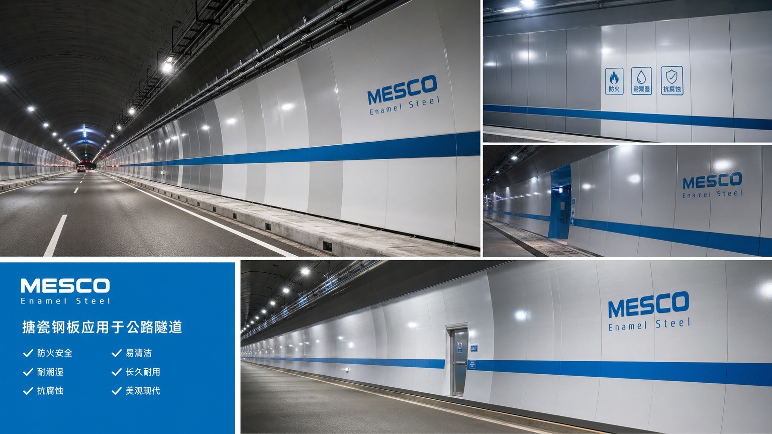 ●Tunnel Linings: Highway and rail tunnel enamel panels delivering fire safety, easy cleaning after exhaust staining, and high light reflectance for driver safety.